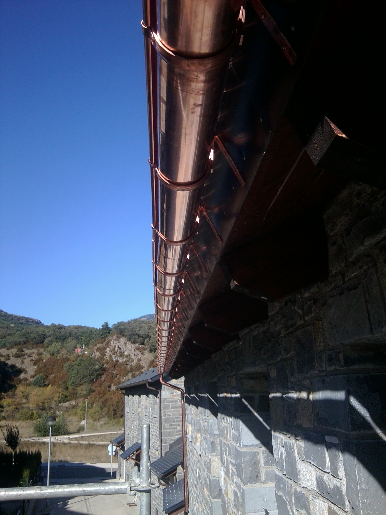 Montaje de canalón y bajantes de cobre la viña II (Villanua)